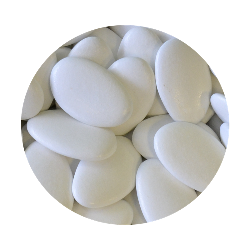 Sukker, kakaomasse, kakaosmør, farve (E171), fortykningsmiddel (gummi arambicum), glukosesirup (af hvede/majs), gelatine, overfladebehandlingsmiddel (shellac, bivoks, carnaubavoks), aroma, emulgator (sojalecithin).Den mørke chokolade indeholder min. 50% kakaotørstof. Kan indeholde spor af peanuts, mandler, nødder og mælk.