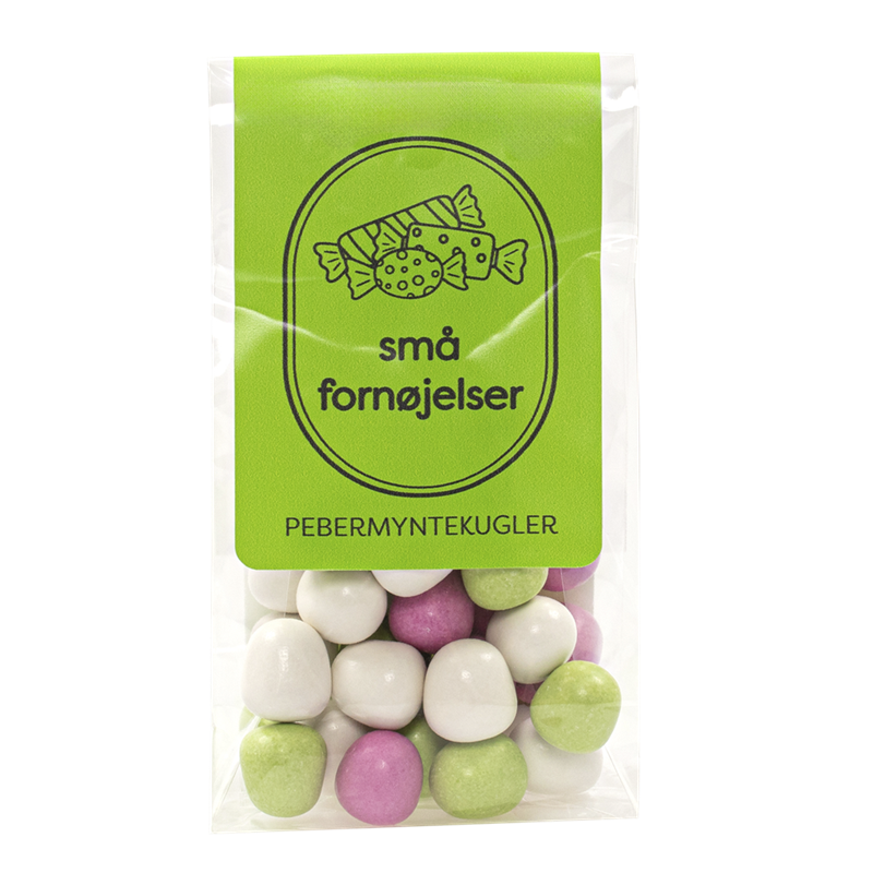 - Lækre små pebermyntekugler i de fineste lyserøde, grønne og hvide farver.