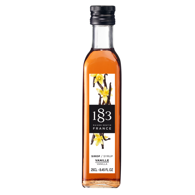 - Vanilla sirup fra 1883 har en smuk ravgul glans. Duften er præcis og kraftfuld. Den fyldige vanilje kombineret med sukker har en perfekt balance og smager fantastisk. Meget stor dybde i smagen. Velegnet til kaffedrikke, is og bagværk.