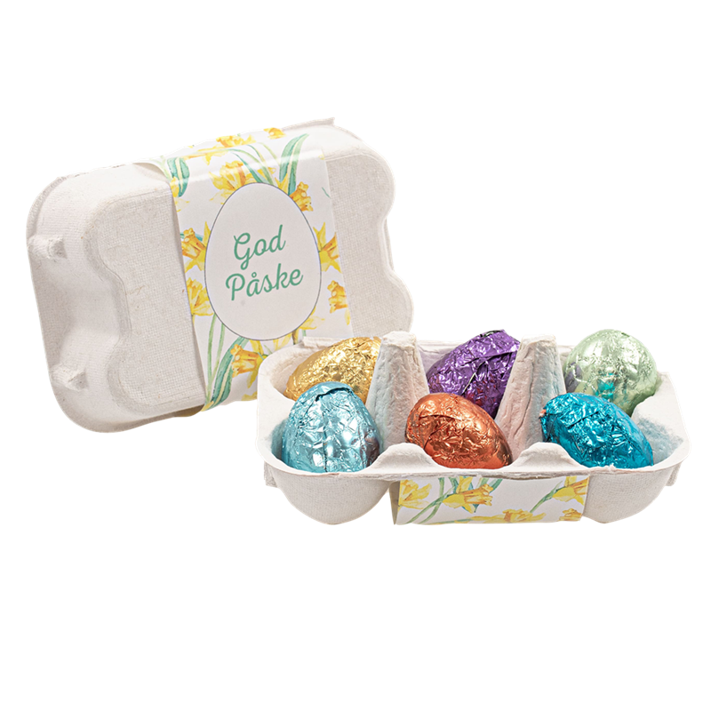 Æggebakke påskelilje, 6 stk. indpakket choko æg