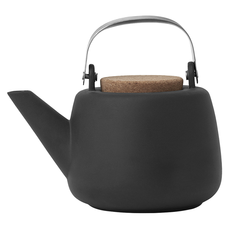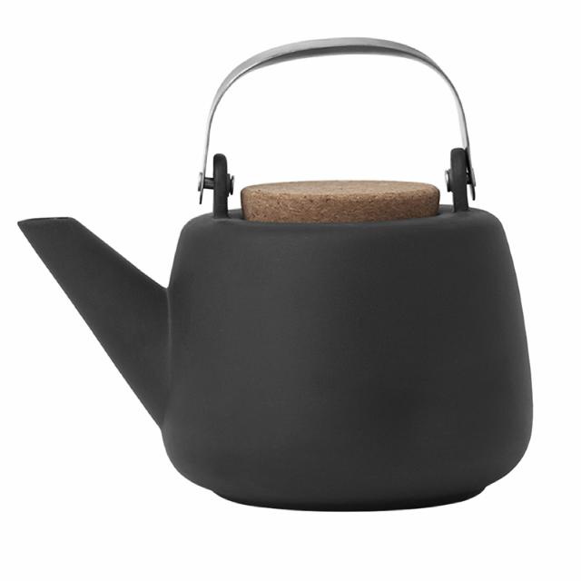 - Smuk og æstetisk porcelæns tekande, med kork låg samt rustfri stål håndtag.