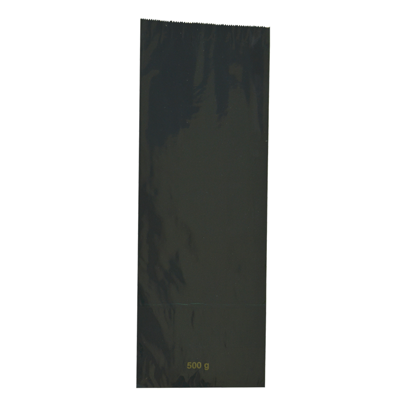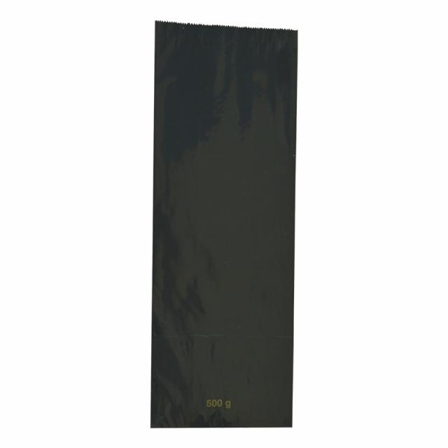 - Sort pose med cellofanoverflade med påtryk "500 g" - måler 105 x 285 x 65 mm.