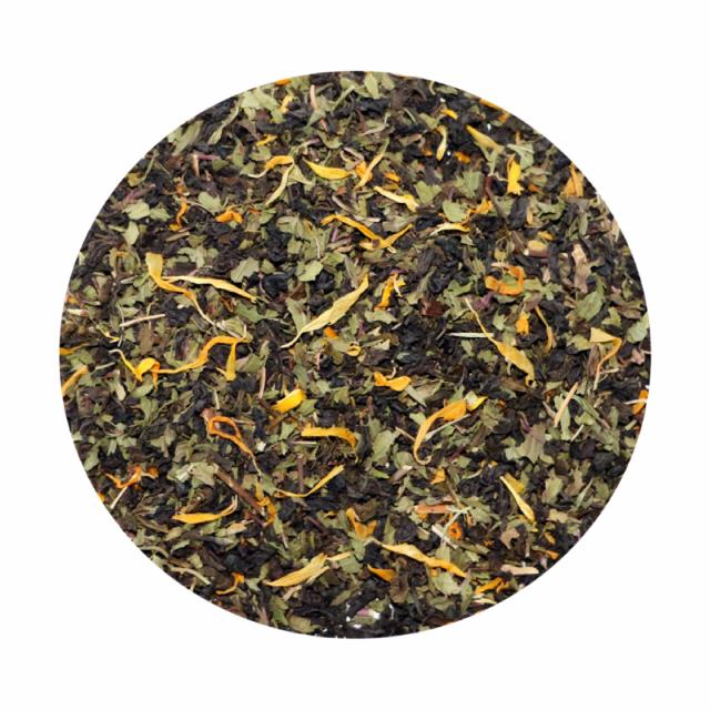 Grøn/grönt/grønn Ceylon te(46%), Sort/svart Ceylon te(30%), pebermynte/pepparmynta/peppermynte(22%) og solsikkeblomst/solros blomma