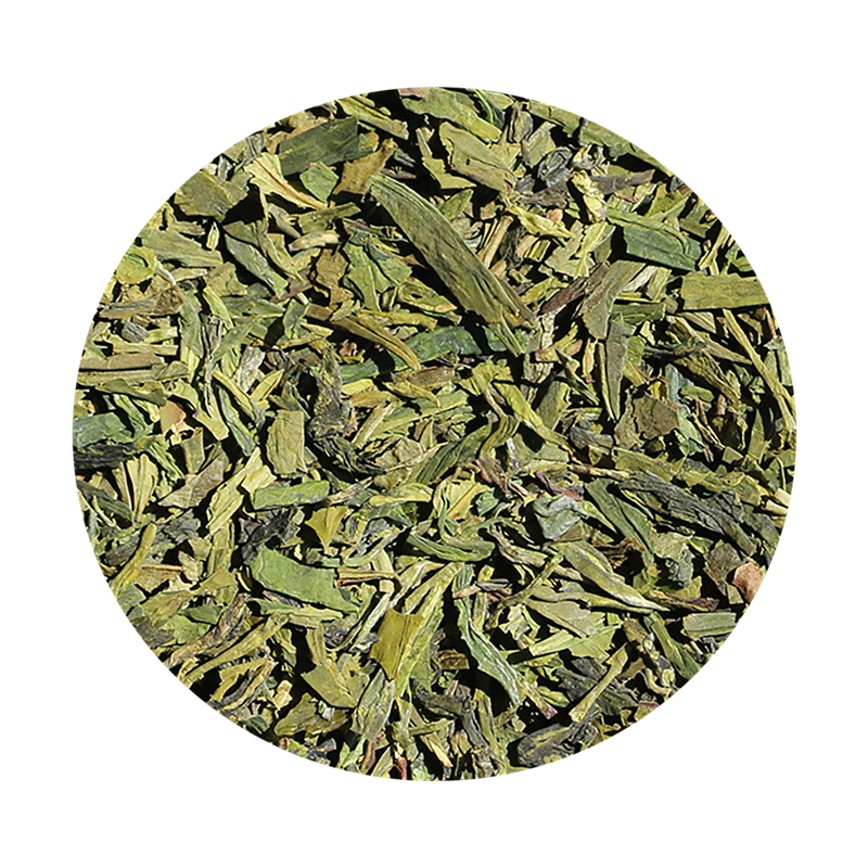 - Lung Ching te kommer fra Hangzhou regionerne i Zhejiang provinsen, som anses for at være det originale og bedste te distrikt i Kina. Lung Ching betyder dragekilde. Som navnet antyder, løber der en kilde gennem området og ifølge legenden huserede der en drage i området. Munkene bad til dragen om at redde bønderne fra tørken, og med ét samlede sig regnfulde skyer, og kilden viste sig. Teen er kendt for sin fyldige, runde og næsten nøddeagtige smag. Teen er tørret og håndformet i en stor jernpande. Det kræver stor håndværksmæssig kunne at presse tebladene mod pandens sider gentagne gange for at opnå det karakteristiske flade udseende. Teen har en frisk aroma og en smuk gulgrøn farve i koppen. Pas på ikke at overdosere ved tilberedning, det vil give kedelig oplevelse.