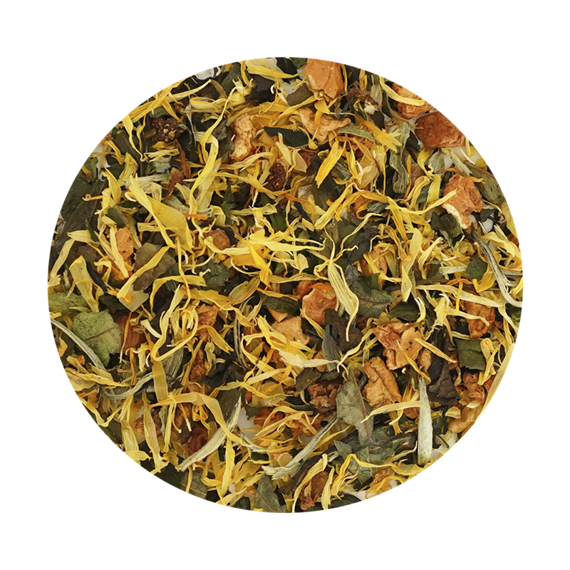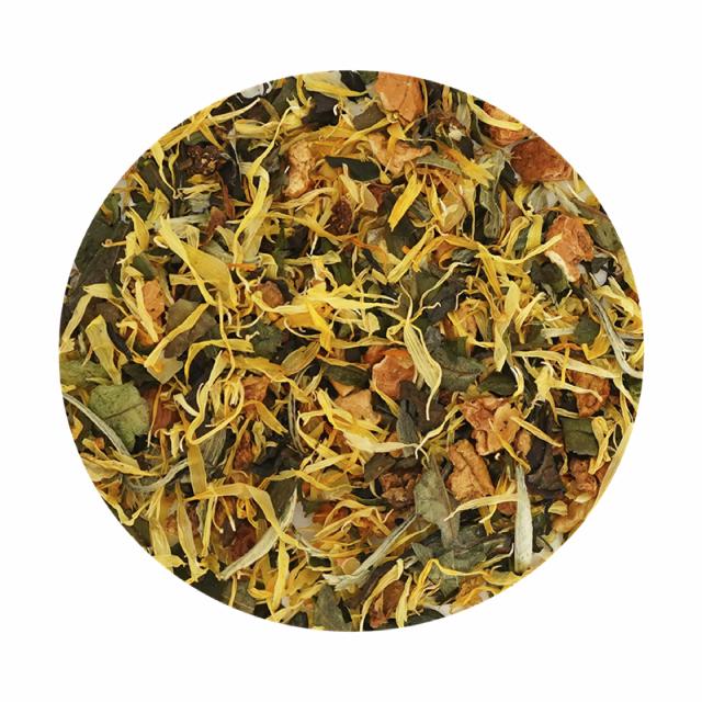 - Tropical Temptation er en mild hvid te blanding, hvor Pai Mu Tan-bladene danner en elegant og let base. De gule farver fra Papaya og morgenfruer giver blandingen et flot og indbydende udtryk. Duften er let og frugtig med tropiske noter, som leder tankerne hen på sol og sommer. Når teen brygges, udfolder den en blid en smag, der balancerer det friske og det sødmefulde på en diskret måde. En te, der med sit gule udtryk og fine frugttoner passer godt til stille pauser og lyse øjeblikke.