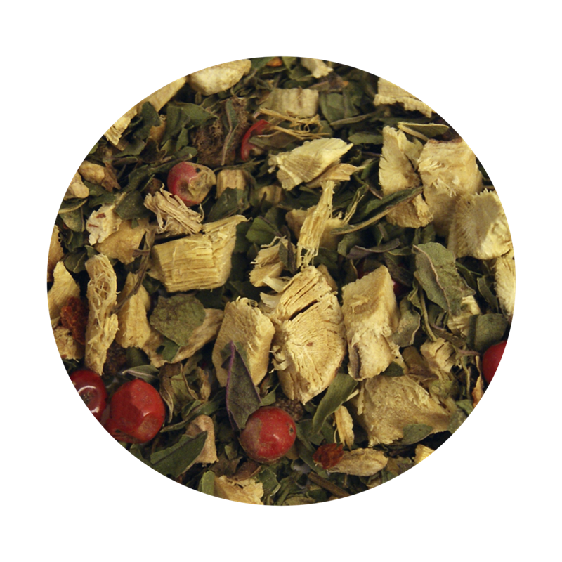 - Chili, ingefær og peber giver varmen, mens pebermynten er frisk og lakridsroden giver sødme. En urte te med bid og kraftig eftersmag