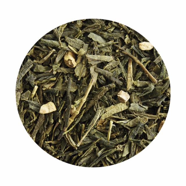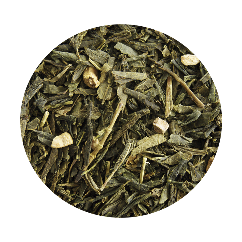 Grøn Sencha te (90%), ingefærstykker (8%) og naturlig aroma.