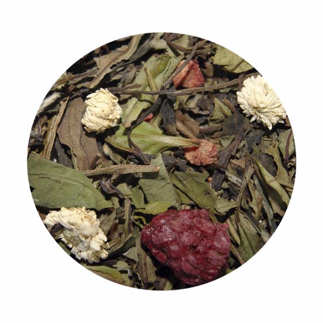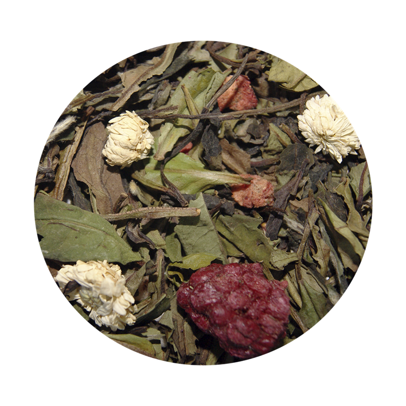 Hvid Pai Mu Tan te (82%), kandiserede melonstykker (8%) (tørret cantaloupemelon, sukker, konsistensmiddel: E509, surhedsregulerende middel: E330), frysetørrede jordbærstykker (3%), frysetørrede brombær (3%), romersk kamille (2%) og aroma.
