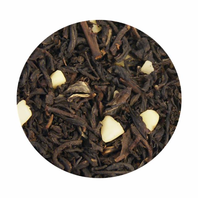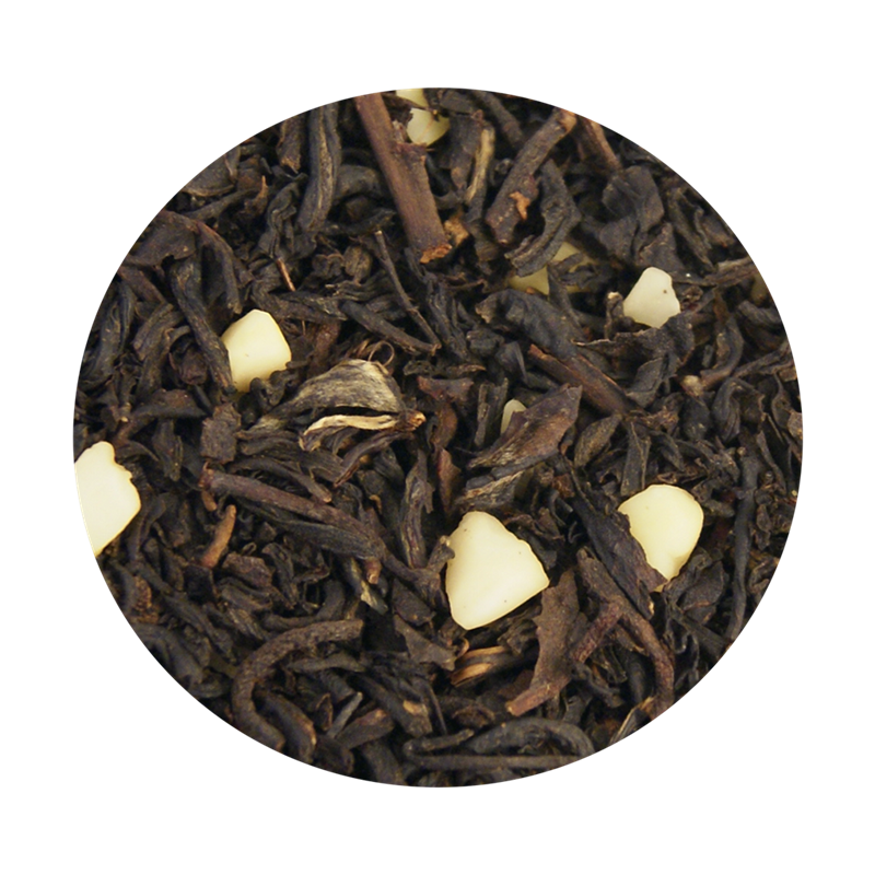 Sort te (95%), hakkede mandler (5%) og aroma.