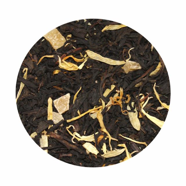 Sort te (94%), kandiserede mangostykker (5%) (mango, sukker, surhedsregulerende middel: E330, konsistensmiddel: E509), morgenfrueblomster (1%) og aroma.
