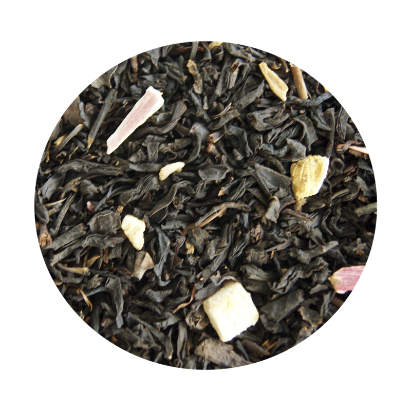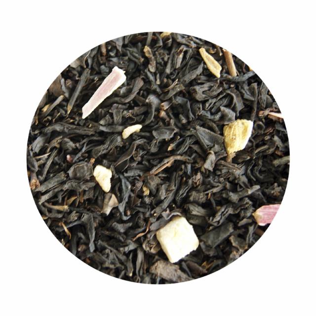 - Fyldig sort te med frisk rabarbersmag.