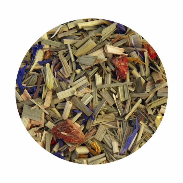 Citrongræs (80%), kandiserede ananasstykker (10%) (tørret ananas, sukker, surhedsregulerende middel: E330), aroma, frysetørrede jordbærstykker (2%), blå kornblomster (1%), saflorblomster (1%), morgenfrueblomster (0,8%) og solsikkeblomst (0,8%)